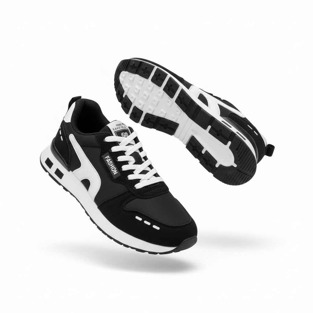 کتونی اسپرت مردانه برند اوستا جنس رویه پارچه ی ضد آب چتری جنس زیره پلی اورتال دردورنگ مشکی و سفید درسایز۴۲+۴۳+۴۴+۴۵